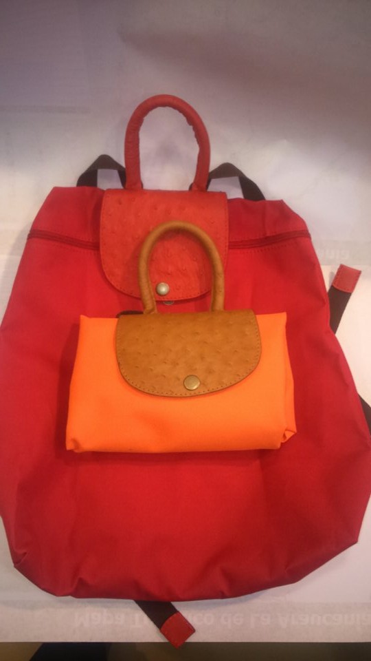 Mochila juvenil plegable, de fácil transporte si no es utilizada, colores, detalle en cuero de avestruz.
