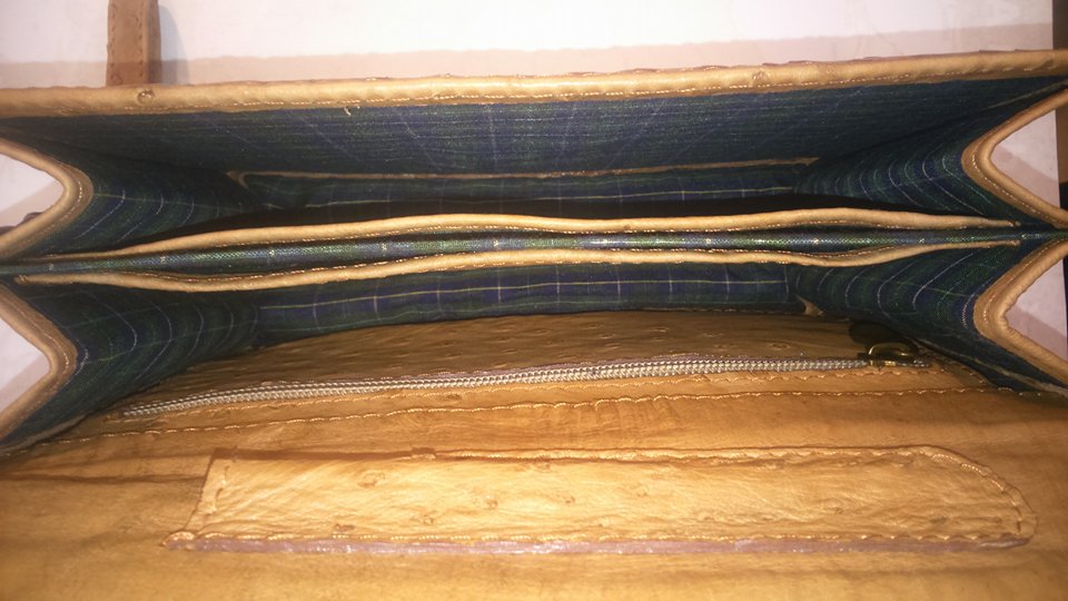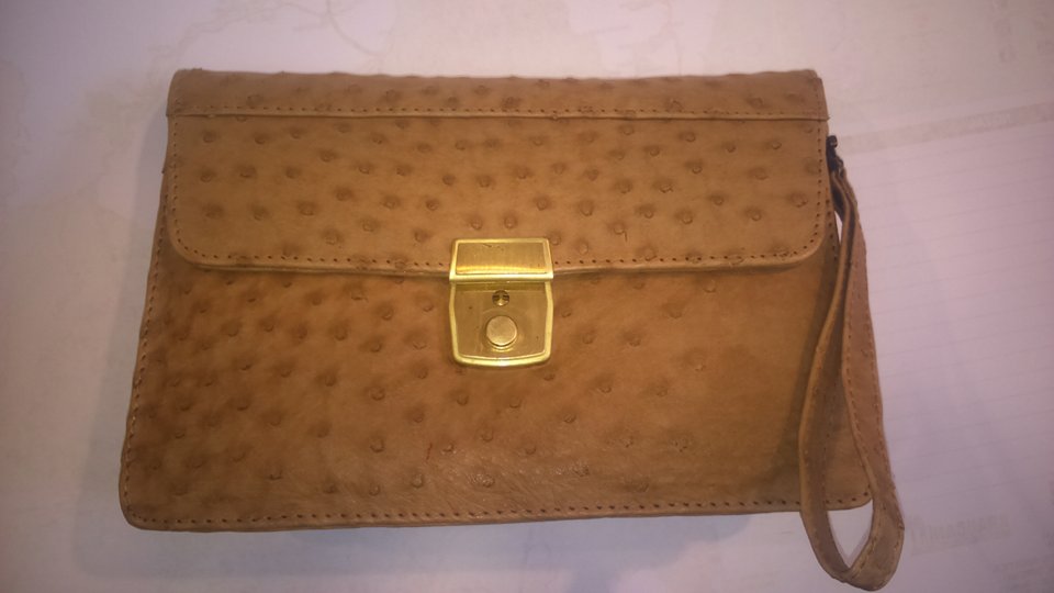 Piel de avestruz, bolso mano hombre, 24*16*12 cm para llevar y proteger documentos bancarios, celular, lentes, etc.