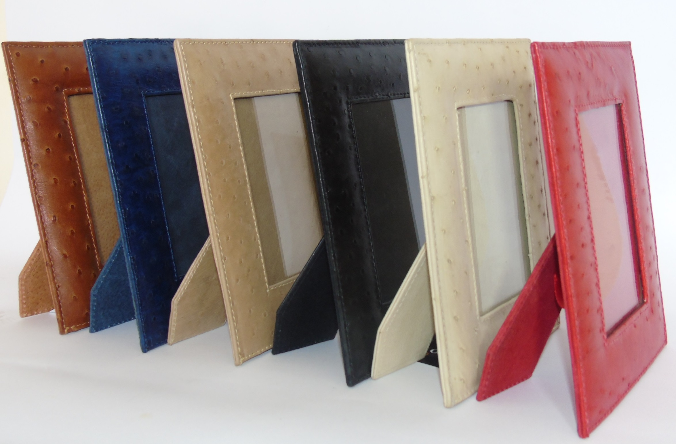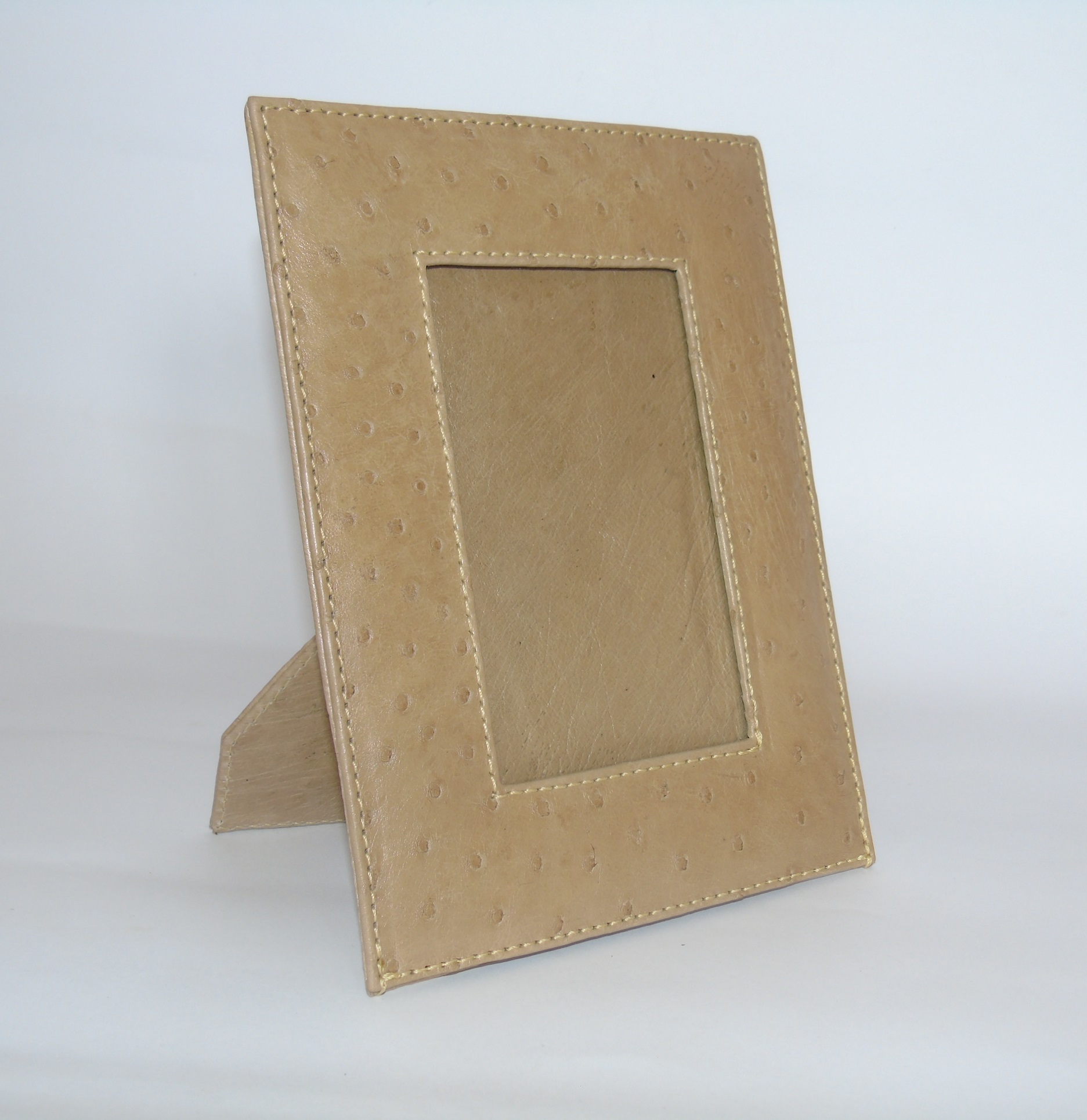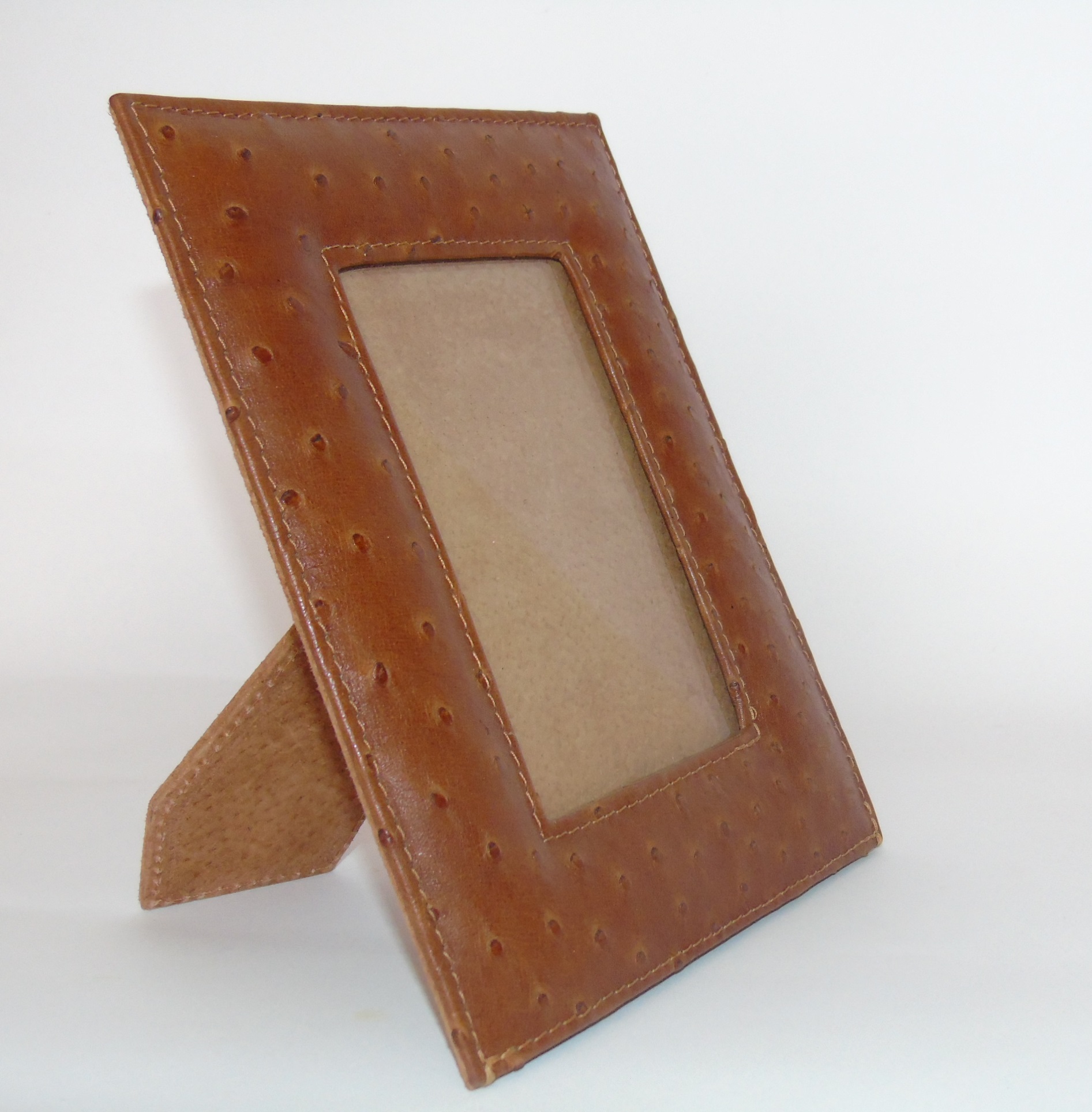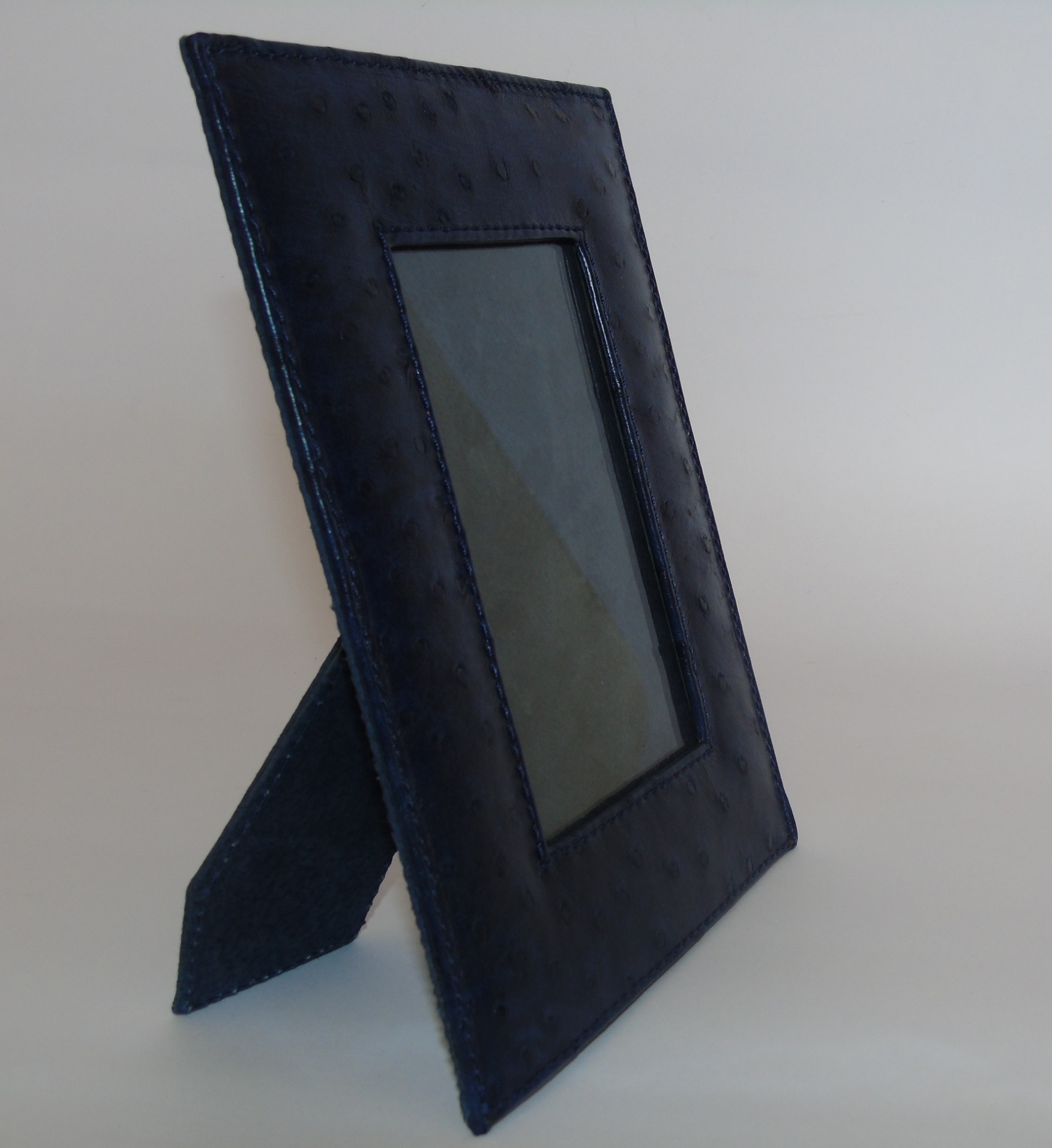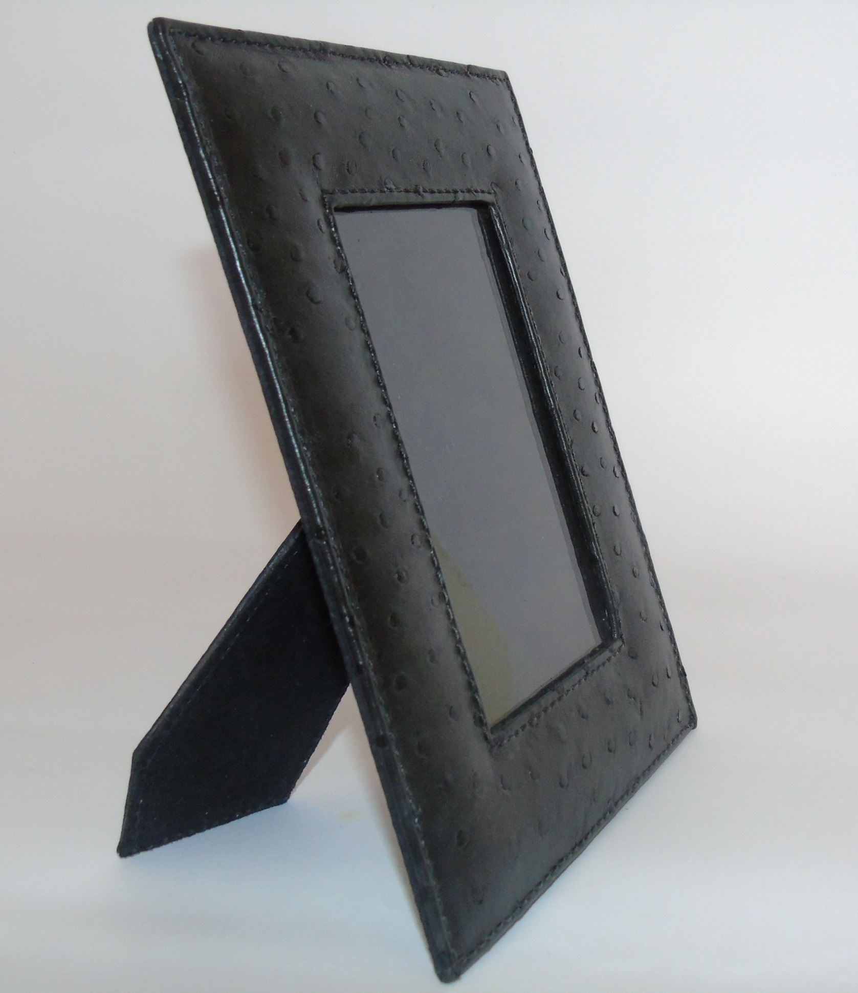 Portaretrato de vidrio tapizado en cuero de avestruz